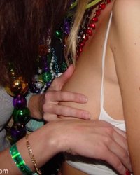 Восхитительная белокурая крошка пришла в бар со своими подругами и явно очень сильно перебрала с алкогольными напитками. Крошка стала оголять свои нереально классные сисечки, достойные всяческого восхищения и активно трусить ими, а потом и вовсе крепко уснула на стуле в полуголом виде.