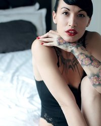 Девица соблазняет мужчин расписанным татуировками телом - порно фото