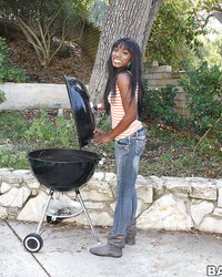 Горячая негритянка немного прибралась во дворе, после чего отправилась в дом к своему кавалеру. Войдя, очаровательная нимфа сразу разделась до нижнего белья и отправилась прогуливаться по комнатам. Вскоре проказница избавилась от надоевших вещей и, принимая откровенные позы, показала свои пикантные места.