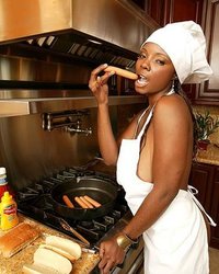 Чернокожая чикса с огромными дойками пришла устраиваться на работу поварихой в частный дом. Мужик как только увидел её крупный бюст, сразу принял на испытательный срок. И незамедлительно начал испытывать её, начав с десерта, которым били её сиськи и манящая чёрная бездна у неё между ног.