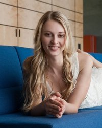 Блондиночка обладает безупречной фигурой и иногда, мужу удается уломать ее сделать эротическую фотосессию. Сначала барышня позирует в легком пеньюаре, демонстрируя прелесть длинных точеных ножек. Потом, сбрасывает и его, обнажив очень красивую грудь, с ярко выделяющимися сосками и округлые подтянутые ягодицы и соблазнительные складки бритой промежности.
