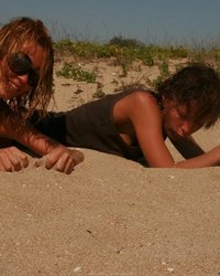 Телки отдыхают на пляже без лифчика - порно фото
